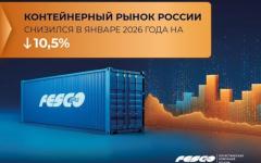 По данным аналитиков FESCO, контейнерный рынок России в январе 2026 года сократился на 10,5% по сравнению с январем 2025 года и составил 504 тыс. TEU.